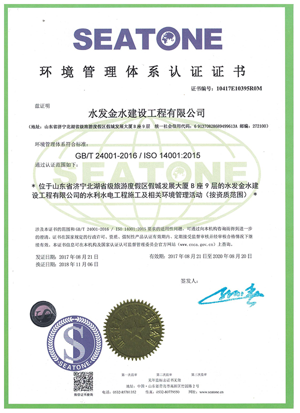 水發(fā)金水建設(shè)工程有限公司 三體證書-環(huán)境