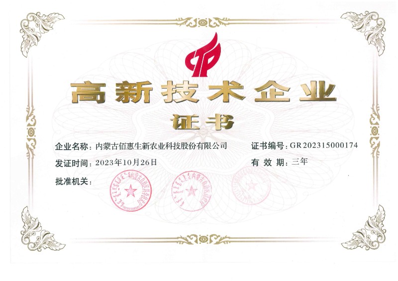 【高新技術企業】內蒙古佰惠生新農業科技股份有限公司
