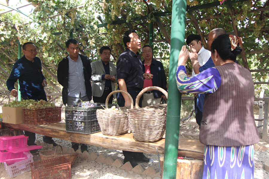 為打造農(nóng)業(yè)全產(chǎn)業(yè)鏈,提升核心競爭力,考察團(tuán)與生之道生態(tài)農(nóng)業(yè)科技股份有限公司就省肥節(jié)水技術(shù)方面進(jìn)行座談,研究合作方案;前往喀什地區(qū)生態(tài)葡萄園考察農(nóng)產(chǎn)品產(chǎn)業(yè)化、訂單化運作模式;與喀什遠(yuǎn)方國際物流港有限責(zé)任公司就組建干果、水果批發(fā)物流基地進(jìn)行深入的交流與探討,切實解決新疆地區(qū)貨物流通問題。