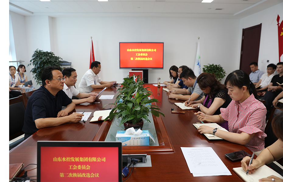 6月21日,水控集團全體在濟職工在黨員活動室召開山東水控發展集團有限公司第二屆工會委員會換屆選舉大會。會議由水控集團黨支部書記、董事長吳東振主持。