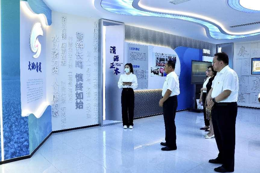 調(diào)研組一行先后參觀了水發(fā)農(nóng)業(yè)集團反腐倡廉教育基地——“大地青蓮”廉潔文化展廳、水發(fā)金水公司職工書屋、黨建活動室,并與現(xiàn)場工作人員進行座談。座談會上,薛忠勇聽取了水發(fā)農(nóng)業(yè)集團黨風廉政建設(shè)工作匯報和水發(fā)金水公司工作匯報。